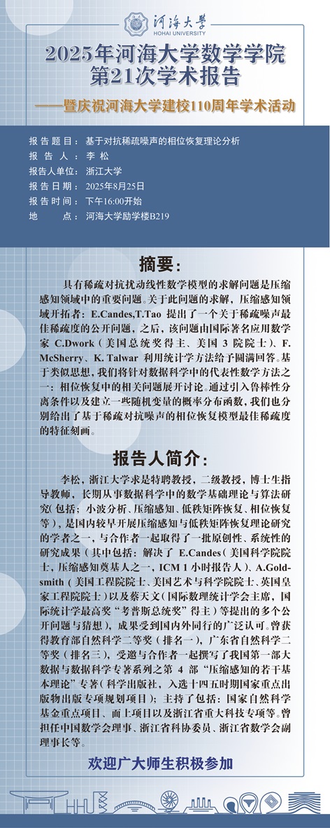 77779193永利集团第21次学术报告:基于对抗稀疏噪声的相位恢复理论分析