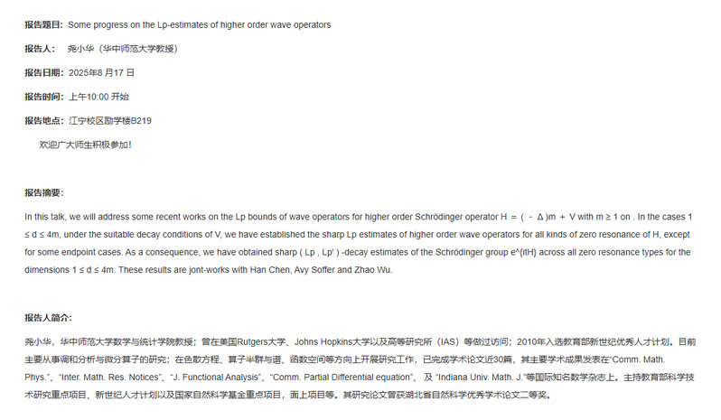77779193永利集团第20次学术报告:Some progress on the Lp-estimates of higher order wave operators