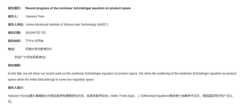 77779193永利集团第16次学术报告:Recent progress of the nonlinear Schrödinger equation on product space