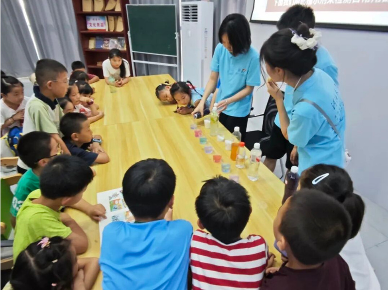 为深入学习贯彻习近平新时代中国特色社会主义思想,全面落实党的教育方针,强化实践育人成效,我院“启明星”科学小实验进社区实践团队分别走进东湖路社区和河南省平顶山市东王营社区,为暑期托管班的孩子们带来了一场别开生面的科学小实验活动。实践团队通过趣味实验与科普故事相结合的形式,让孩子们在动手实践中感受科学的魅力,种下了探索未知的种子。