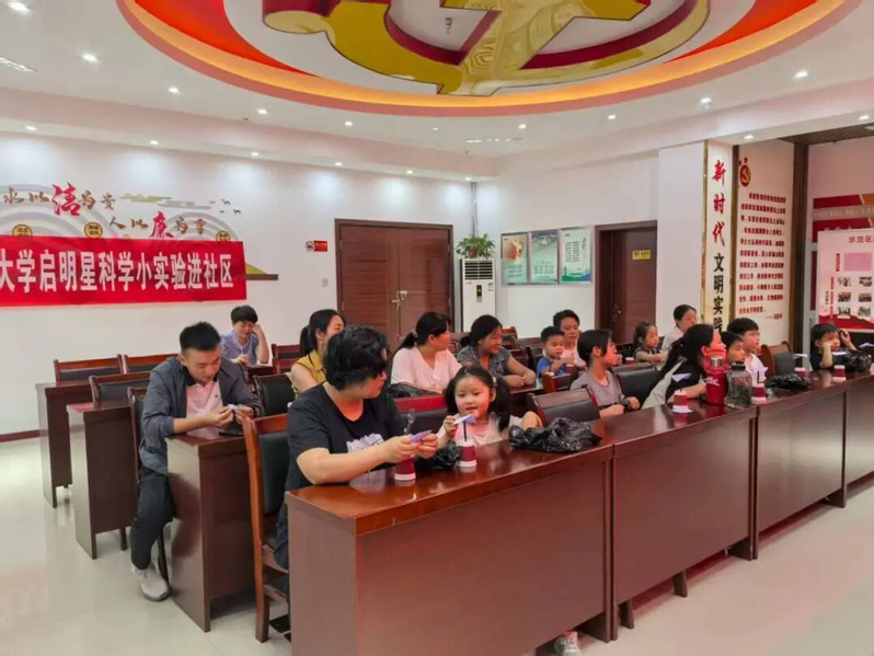 在东湖路社区活动现场,志愿者们将紫甘蓝叶片浸泡出的紫色液体分别倒入不同的溶液中,原本统一的紫色瞬间变幻出红、绿、蓝等多种色彩。“这是因为紫甘蓝里的物质能‘检测’溶液的酸碱性哦!”志愿者一边演示,一边用通俗易懂的语言讲解酸碱原理,孩子们瞪大双眼,不时举手提问,好奇地想要亲手尝试。