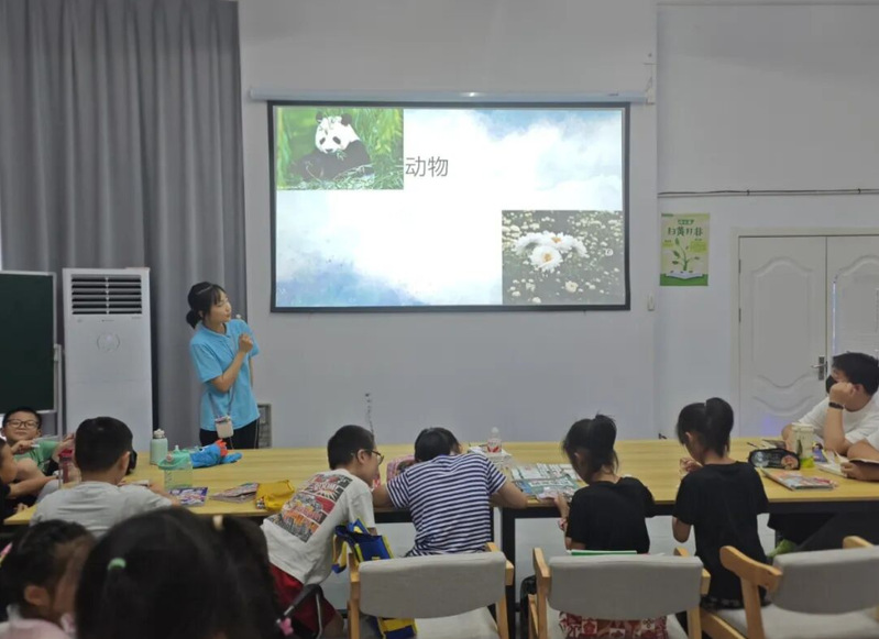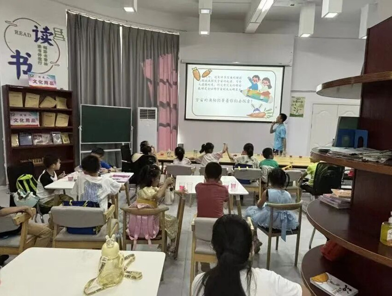除了互动实验,志愿者们还带来了两个奇妙的小故事。一个讲述宇宙的浩瀚——从地球到太阳系,再到遥远的星系,孩子们听得入迷,纷纷畅想“宇宙的另一边会有什么”;另一个则揭秘微生物的“微观世界”,用拟人化的语言介绍细菌、真菌的作用,让孩子们知道“看不见的小生命也有大用处”。故事结束后,孩子们围着志愿者叽叽喳喳地分享自己的想象,现场充满了欢声笑语。