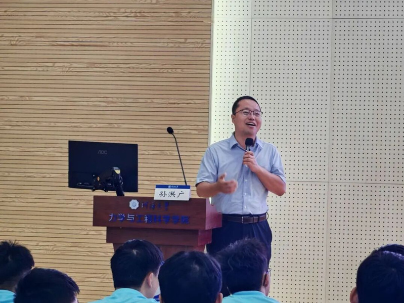 报告会上,孙洪广教授以自身经历为切入点,用真挚的情感与质朴的语言,为新生分享成长经验与专业见解,为在场同学带来了启发。他向新生提出“志存高远,脚踏实地”的期望。随后,他详细地介绍了自己的研究方向与工作经历,重点说明数学知识在水利水电等工科领域的实际应用场景,帮助新生理解数学学科的实用价值。